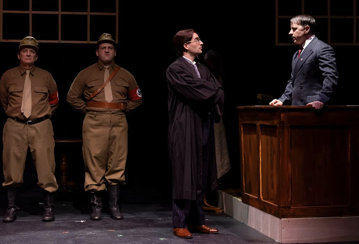 The play moves from Litten’s family home in Königsberg to his law office, where he represents workers and communists assailed by the state. Litten is not an ideologue, left or right. He is devoted to the rule of law, though the newspapers dub him “that Commie-loving Jew Litten.” Initially, Litten insists Germans are too educated and devoted to order to support a maniac like Hitler (Calhoon). But as democratic norms are destroyed, Jews and immigrants attacked and political enemies targeted, Litten’s law partner (Dave Stishan) warns him of impending doom.